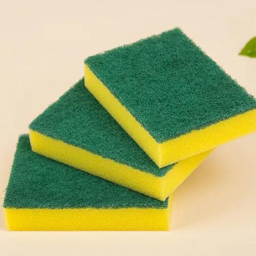 清潔海綿吸水性好起泡豐富,百潔布刮擦力大去污強(qiáng),海綿百潔布組合之后具有雙重清潔功效,一面海綿的柔軟,一面百潔布的堅(jiān)硬。黃色海綿復(fù)合綠色百潔布是我們常見的,然而黃色海綿的缺點(diǎn)在于,污垢藏匿在海綿孔洞里很難清洗干凈,容易發(fā)霉變質(zhì),現(xiàn)在十分流行的神奇魔力海綿擦可以彌補(bǔ)這一缺陷。